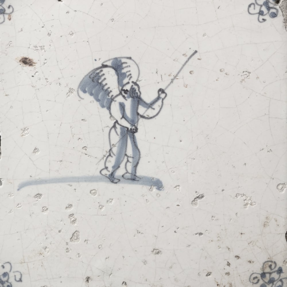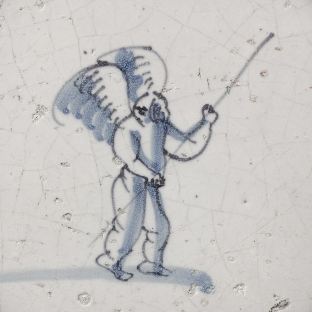 槍を持った天使像 デルフト陶器 染付タイル, オランダ, 17世紀.
