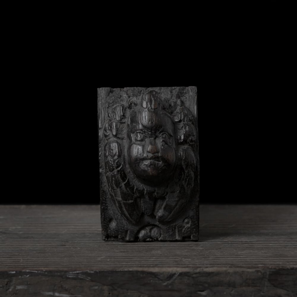 顔の周囲に羽が彫刻されており、その造形から高位の天使である熾天使か智天使だと思います。