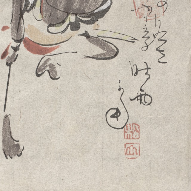 日本、大正時代-昭和時代、20世紀初頭。高橋松山の大津絵 「槍持奴」。