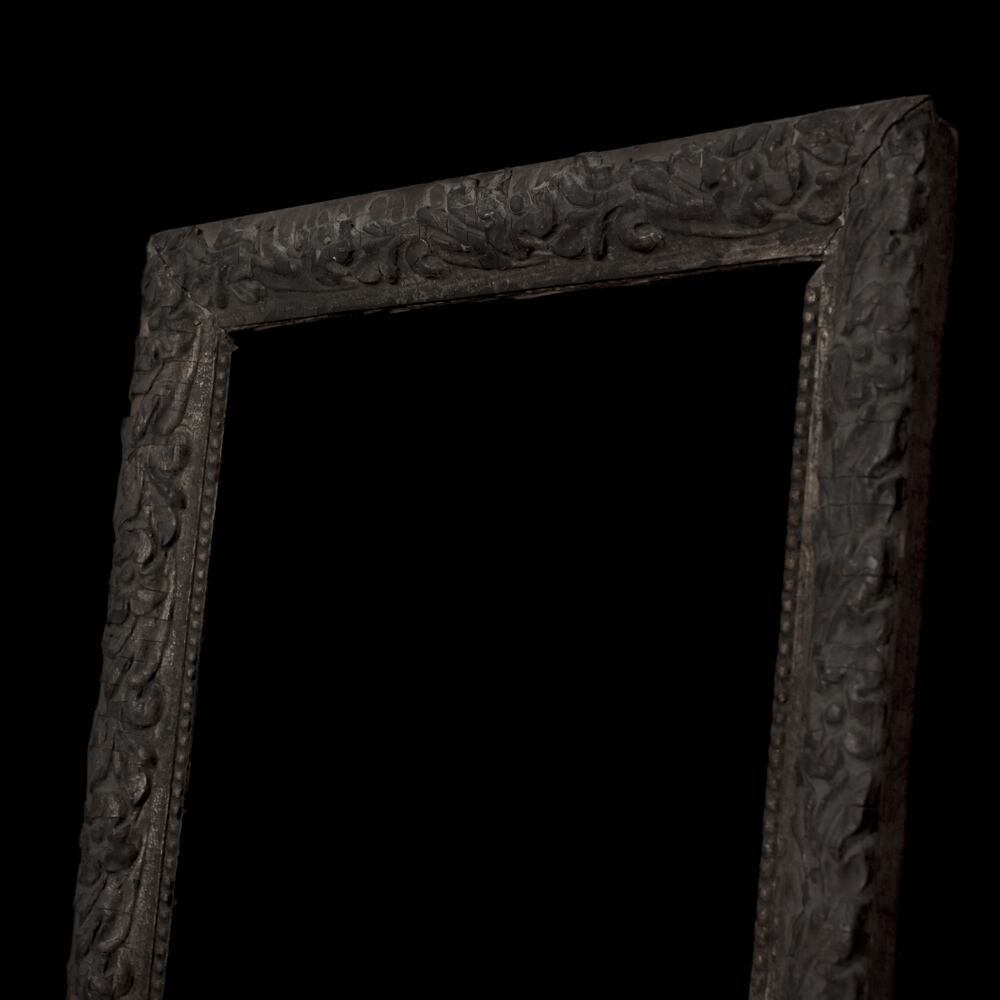 パスティーリアで施された装飾とくすんだ金彩が美しいフレームです。植物、曲線的なレリーフ装飾が額縁を彩っています。亀裂や剥離からは時の流れを感じさせ、崩れかかった物の魅力を感じます。